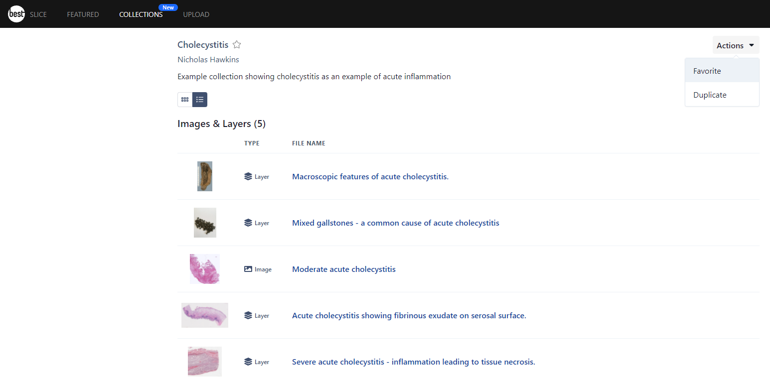 Alternatively, open the Collection you wish to set as a favorite and select the Favorite option from the Actions button.